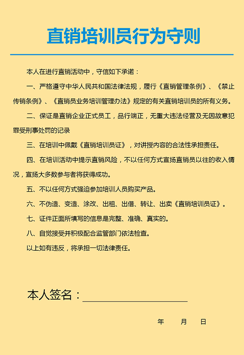 >直銷培訓(xùn)員證樣本